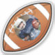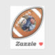 Um adesivo esportivo com uma foto dentro de uma bola de futebol. Personalize com uma imagem favorita.