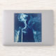 Esta fotografia cianotípica de Bubba, o gato é caprichoso e captura uma cena pungente de um gato olhando pela janela, evocando um senso de melancolia e introspecção.