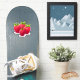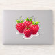 Uma ilustração vívida e colorida que mostra framboesas frescas e maduras, enfeitadas com folhas verdes e peludas. Representação perfeita do produto natural em cores vibrantes, enfatizando o detalhe da textura da fruta.