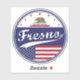 Fresno California. Design de Fresno com bandeira dos Estados Unidos e bandeira da Califórnia, Cali Vibes, California Dream. Vinheta de automóvel Fresno, vinheta de bagagem Fresno, viagem de Fresno, vinheta para-choques Fresno, forma arredondada da vinheta Fresno.