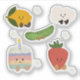Adorável conjunto de clientes kawaii com um sorridente morango, limão, pepino, nuvem fofa e bolo de aniversário colorido com uma vela. Perfeito para autocolantes, arte digital, projetos infantis, rascunho, papelaria, convites de festas e designs divertidos e divertidos. Esta bela ilustração feita à mão traz doçura e alegria a qualquer projeto criativo.