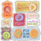 Diversão e cor, escolha saudável, adesivos orgânicos de fruta