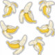 Etiquetas de bananas amarelas tropicais, com 6 autocolantes individuais por ordem