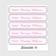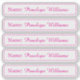 Stay organized in style with this set of 5 customizable name labels featuring elegant fuchsia text on a clean white background. Each rectangular label with softly rounded corners includes the word “Name:” followed by your personalized text. Perfect for labeling notebooks, planners, folders, storage boxes, or kids’ school supplies. Simple, bright, and fully editable to match your preferred color and font — a practical and stylish addition to any labeling collection.