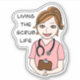 Vivendo a vida esfregada. Engraçada mão, enfermeira de mortalha caucasiana, médica, adesivo de humor de cuidador.