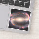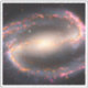 Galáxia espiral NGC 1300. A luz de rádio está representada em amarelo e destaca as nuvens de gás molecular frio que fornecem a matéria-prima a partir da qual se formam as estrelas. As cores vermelha e magenta capturam o impacto de estrelas jovens e massivas no seu gás circundante. A luz visível e ultravioleta destaca as faixas de poeira em ouro e estrelas muito jovens e quentes em azul.