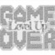 Game Over is depicted in bold, pixelated lettering, with the words “Level Up” creatively superimposed on it in an ornate script at its center and a sun shining behind it at the top. The graphic has a retro gaming aesthetic with a playful twist...