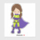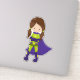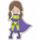 Adesivo Garota Super-Herói, Garota Bonita, Cabelo Marrom,