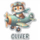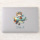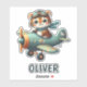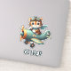 Embarque em aventuras encantadoras com este adesivo personalizado com um pequeno e ousado tigre pilotando um avião vintage. ✨ Adicione o seu nome para um toque único!