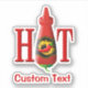 Letras HOT com o O feito com uma garrafa de molho pimenta. Custom Text.