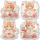 Melhore seus artesanatos, presentes e papelaria com este conjunto de quatro adesivos apresentando um adorável gatinho vermelho sentado em uma xícara de chá luxuosa adornada com detalhes intrincados em dourado e cercada por sutil realce floral. Perfeitos para amantes de gatos e fãs de designs caprichosos e elegantes, esses adesivos capturam um clima romântico e encantador. Ideais para scrapbooking, embrulhar presentes ou decorar cadernos e cartas, eles adicionam um toque de magia e sofisticação a qualquer projeto. Esses adesivos de alta qualidade são perfeitos para ocasiões de feriado, aniversários ou simplesmente para espalhar alegria.