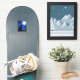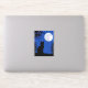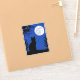 Um palito numa silhueta de um gato, olhando para uma lua de cheio num céu estrelado azul profundo