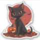 Adesivo Gato de Dia das Bruxas Negro e Bonito com Jack-o-L