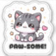 Este adesivo adorável foi projetado para derreter corações com seu gráfico de gatinho Kawaii irresistível. Imaginem um gatinho fofo com olhos grandes e cintilantes e um nariz rosa minúsculo que gritar diversão e felicidade. O adesivo também apresenta a palavra "Paw-some!" em letras brincalhonas e chamativas. É um jogo de palavras que adiciona um toque de humor e charme ao design, fazer perfeito para qualquer um que ama gatos, trocadilhos, ou apenas espalhando alegria aonde quer que vá. Coloque-o no seu laptop, garrafa de água, notebook ou em qualquer outro lugar que precise de uma dose de cutena e positividade.