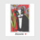 Adesivo Gato de Tuxedo Branco Negro Sentado em Vermelho Da
