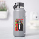 Este vinil tem um tuxedo preto e branco com olhos verdes sentados em frente a margaridas brancas com folhas verdes sobre fundo vermelho vibrante.