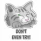 Uma imagem de um gato cinza engraçado com nariz rosa e olhos verdes. O animal está meio dormindo, meio vigiando um estranho. Nem Tente! texto personalizável sob a imagem. Você pode alterar ou excluir o texto. Use a opção "Editar Design" para alterar a cor, o tamanho e o tipo da fonte. Seja criativo, personalizado e comprar um, e seja feliz.