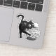 Traga um toque de maldade para o seu laptop, garrafa d'água ou notebook com este adesivo bonito. Com um gato de olhos largos abraçando um aquário gentilmente, este design captura a curiosidade irresistível de nossos amigos felinos. Perfeito para amantes de gatos, entusiastas de animais, ou qualquer pessoa que goste de arte bonitinha e caprichosa.