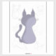 Desenho de um gato com as costas para nós e rabiscos de outros gatos no fundo
