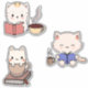 Adesivo Gatos Cachorros Lendo Livros e Café Bebendo