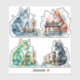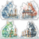 4 ilustrações em aquarela de gatos jogando xadrez. 🐱
