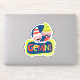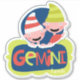 Aqui está um adesivo bonito que orgulhosamente proclama seu status de Gemini! Ele apresenta os gêmeos com bonés riscados espreitando sobre uma faixa com texto estilizado em vermelho e verde limão que diz "Gemini". Seu nome está em texto menor, em branco, no canto inferior direito. Se preferir, você pode facilmente remover o nome limpando o campo. *O Clip art usado neste design é protegido por direitos autorais pela Encore Software, Inc., que permite o uso a seus licenciadores. Todos os direitos reservados.