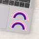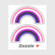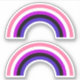 Vinhetas-vinil com dois arco-íris nas cores da bandeira do orgulho de fluidez do gênero. Bandeja rosa, branca, magenta, negra e roxa do movimento do orgulho de fluidez do gênero