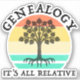 Genealogia - É Tudo Relativo. Acessório engraçado para amantes da genealogia é um presente excelente para um genealogista ou historiador familiar, ou qualquer pessoa que ama história familiar e ancestralidade! Perfeito para alguém que gosta de genealogia, e adora pesquisar seu DNA, ancestralidade, árvore genealógica e história familiar. Apresenta um gráfico aflitivo com um pôr do sol retrô e árvore genealógica com raízes. Vista quando estiver fazendo pesquisa em um cemitério ou biblioteca.