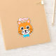 Uma ilustração de um desenho animado e adorável gato gengibre feliz com o papel azul. Este design de gatinho animal é uma ideia de presente para amantes de animais de estimação. Personalize ou personalize este adesivo adicionando seu próprio texto.