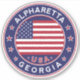 Alharetta, adesivo Georgia Alpharetta com cores de bandeira americana em forma arredondada. Adesivo de carro Alpharetta, Coleção Cidades da Geórgia