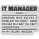 Engraçado Gerente De Ti Dizer: "Gerente De Ti Alguém Que Resolve Um Problema Que Você Não Sabia Que Tinha De Uma Maneira Que Não Conseguia Entender". Agarra esta design do Gerente de TI Engraçado como presentes engraçados para uma mãe, pai ou amigo espetacular.