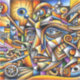 Menschliches im abstrakten Stil, nach Wassily Kandinsky Porträtzeichnung für Grafiken, Poster, Banner.