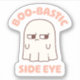 Um rabisco de um fantasma bonitinho dando um olho lateral de desaprovação. A legenda engraçada do trocadilho diz "Olho Lado Básico".