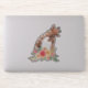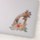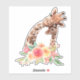 Decal de vinilo/adesivo de contorno com um desenho bonito em aquarelas de uma mãe e girafa bebê. A girafa-mãe está descansando a cabeça sobre a girafa do bebê, amorosa e adorável. Bonito buquê rosa, amarelo, verde, de flor de aquarela colocado debaixo deste par de queridos.