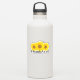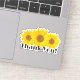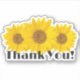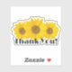 Três girassóis amarelos com "Obrigado!" em letra retrô.