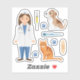 Adesivo Girl Veterinarian With Puppy Cat And Vet Things