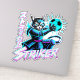 Upgrade your gear with this electrifying samurai striker cat sticker, featuring a stunning cyberpunk glitch effect. This high-quality vinyl sticker is perfect for personalizing your laptop, gaming console, or water bottle with a blast of futuristic energy. It's a must-have small gift for any gamer, anime fan, or soccer player looking to showcase their unique style.
