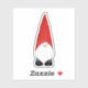 Este adesivo de Natal apresenta arte original de Dogwood & Thistle de um gnomo desenhado à mão e colorido com um chapéu grande vermelho e uma barba branca e umida, com suas pontas de botas pretas mostrando abaixo. A imagem foi então digitalizada e os realces e sotaques foram adicionados digitalmente.