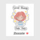 A gentle and inspiring illustration of a girl with closed eyes and a peaceful smile, surrounded by stars and sparkles. The quote “Good things take time” reminds us to be patient and trust the process — beautiful things grow slowly but surely.