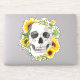 Design de crânio de girassol brilhante e colorido. Gótico nunca parecia tão alegre? Adorei esta bela ilustração de colagem de aquarela, perfeita para qualquer superfície!