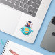 Celebrar a convergência da educação e da inovação com o nosso adesivo de olhos com um formando sentado sobre um globo de criptomoeda.