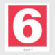 Número 6. Número 6 Número individual como autocolante. Vermelho e Branco. 8 x 8 polegadas