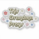 O poder de uma vovó rezante é poderoso e pode mover montanhas! Este retro-decal é para as legal avós que não se envergonham do evangelho de Jesus Cristo! A mensagem diz "Essa Vovó Reza" e tem flores simples, rosa e azuis.