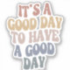 Etiqueta de tipografia retrô-groovy com texto retrógrado de cores modernas: é um bom dia para se ter um bom dia".