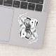 Ilustração negra e branca do Rei dos Espadas lutando contra os seus próprios espelhos por dominância do seu reino de cartas. Por Paxdomino