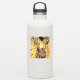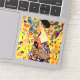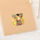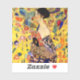 Vinheta com pintura de óleo de Gustav Klimt Lady com ventilador (1918). Uma mulher vestindo um quimono azul segura um fã vermelho contra um fundo amarelo colorido de flores e pavões. Um presente de excelente para fãs de arte japonesa e europeia.