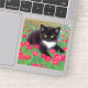 Vinheta com um gato de smoking Gustav Klimt! Este adorável gatinho preto e branco se senta num campo de flores vermelhas, azuis, brancas e laranja. Um presente incrível para amantes de gatos e entusiastas de arte austríacos!