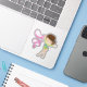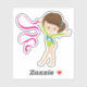 Este adesivo de recorte apresenta uma gymnética rítmica de cabelo castanho e fofa com fita.