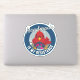 “Handmade Is My Resistance” round badge-style sticker features a bold red cardinal knitting in a blue, retro-modern, mid-century–inspired design.