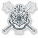 Representa a Escola Hogwarts de Bruxaria e Feitiçaria com esta design do mundo de Harry Potter. Apresentando duas varas cruzadas, disparando faíscas mágicas e lançando contra a crista escolar, esta design deve identificá-lo como um fã dificil da série J.K. Rowling. Um grito legal, independente da casa de Hogwarts a que pertences; Gryffindor ou Ravenclaw, com seus emblemas inspirados em animais.